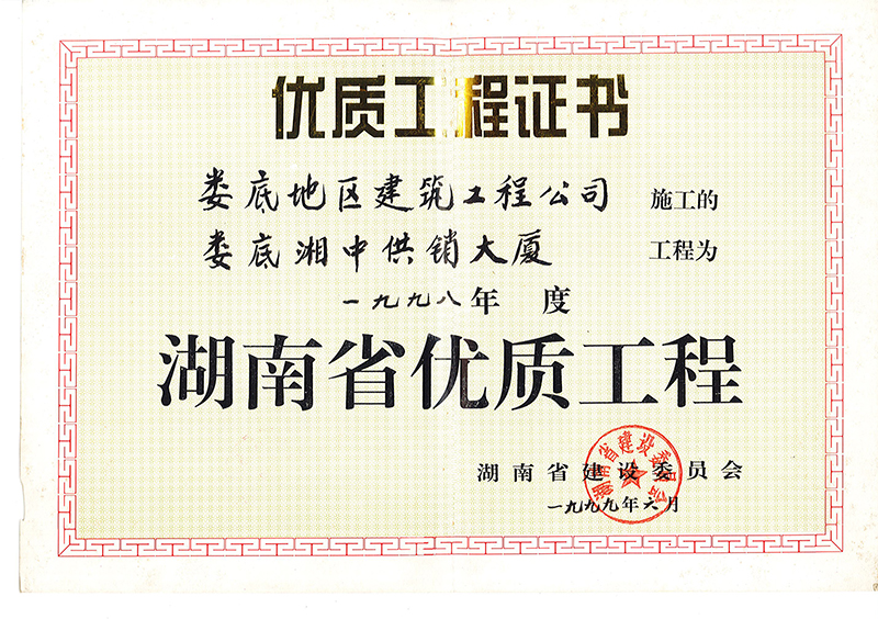 1998年度省優(yōu)質(zhì)工程(婁底湘中供銷(xiāo)大廈)