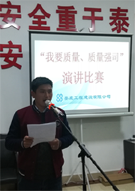 2017年11月17日晚,公司在機關辦公室大會議室舉辦了一場別開生面的“我要質量,質量強司”演講比賽。共有16位項目經理上臺發表了主題演講。經過評委現場打分評定,來自百弘學府城的項目經理李朝陽榮獲一等獎;公司江龍灘基地項目經理李紅暉、雙峰三塘鋪獨立工礦區現代產業園蜉化器項目項目經理謝晃分獲二等獎。